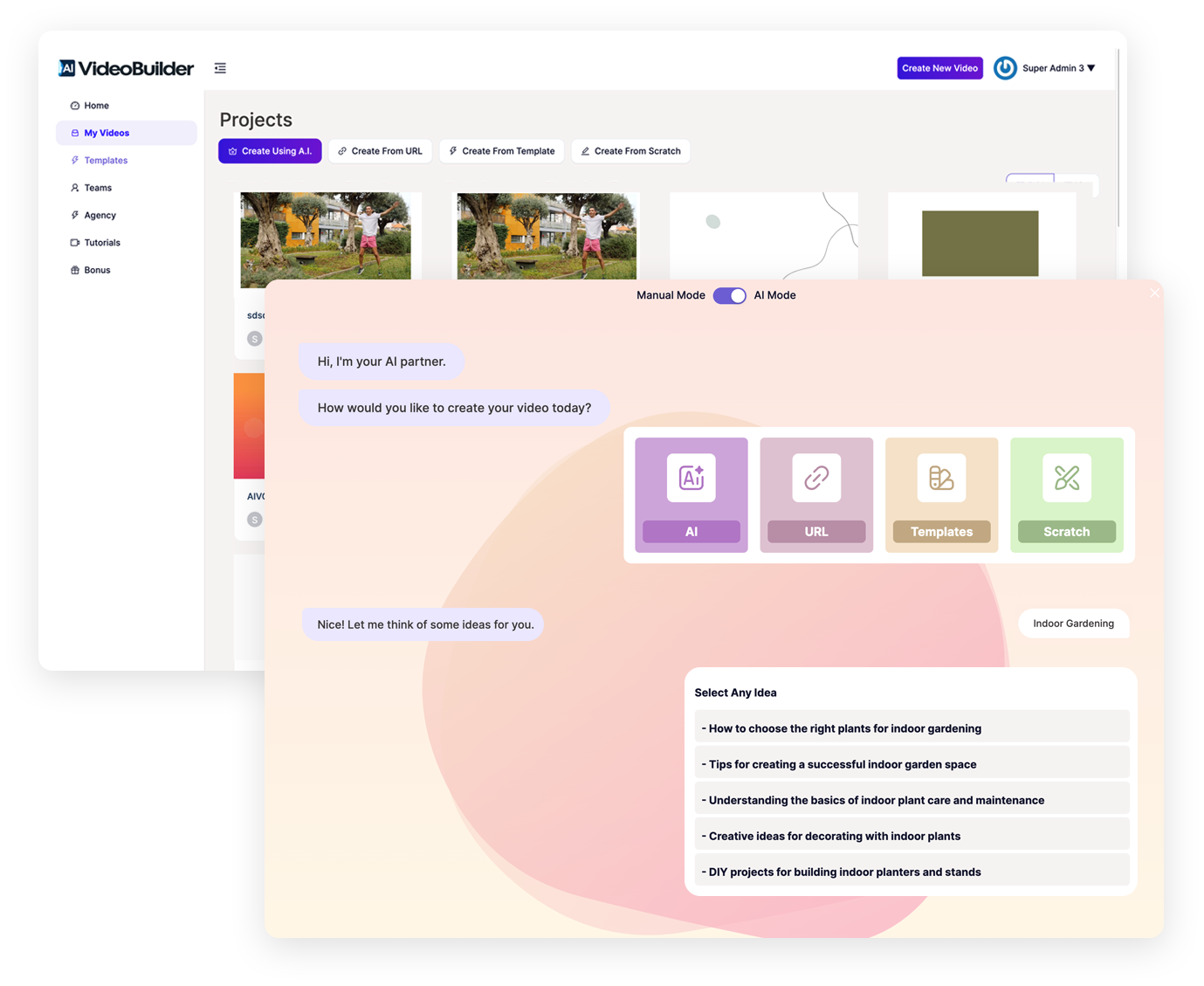 With AIVideoBuilder, you are getting a commercial agency license with 3 additional seats for your clients, co-workers or family with individual logins.